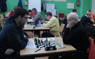 El siguiente en caer fue Felipe, que no debió haber perdido, pero son esas cosas cuando se juega parecido, que puede ganar cualquiera. Felipe no quiere subir a Segunda y mantiene un 50% que para el tablero que defiende 3º-4º podría ser mejor. A ver si ya se saca Elo Fide en el Open y empieza una nueva etapa.