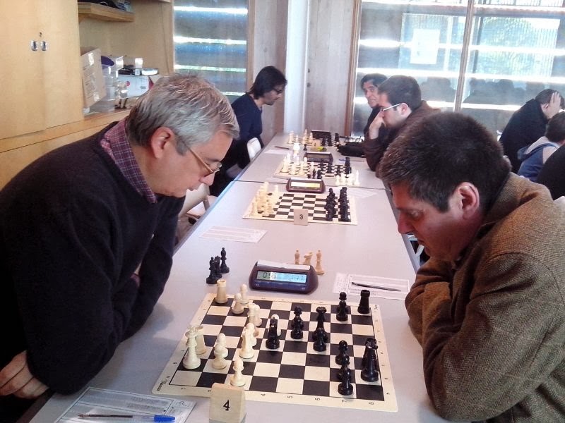 En el último tablero de la ronda, Fernando y Francisco juegan una semieslava, ambas damas se desarrollan precipitadamente, incluso antes que el resto de piezas. haciendo incursiones en el campo enemigo. Finalmente el mejor desarrollo de las piezas blancas ayudan a la dama en su incursión obteniendo ventaja decisiva con un buen golpe táctico.